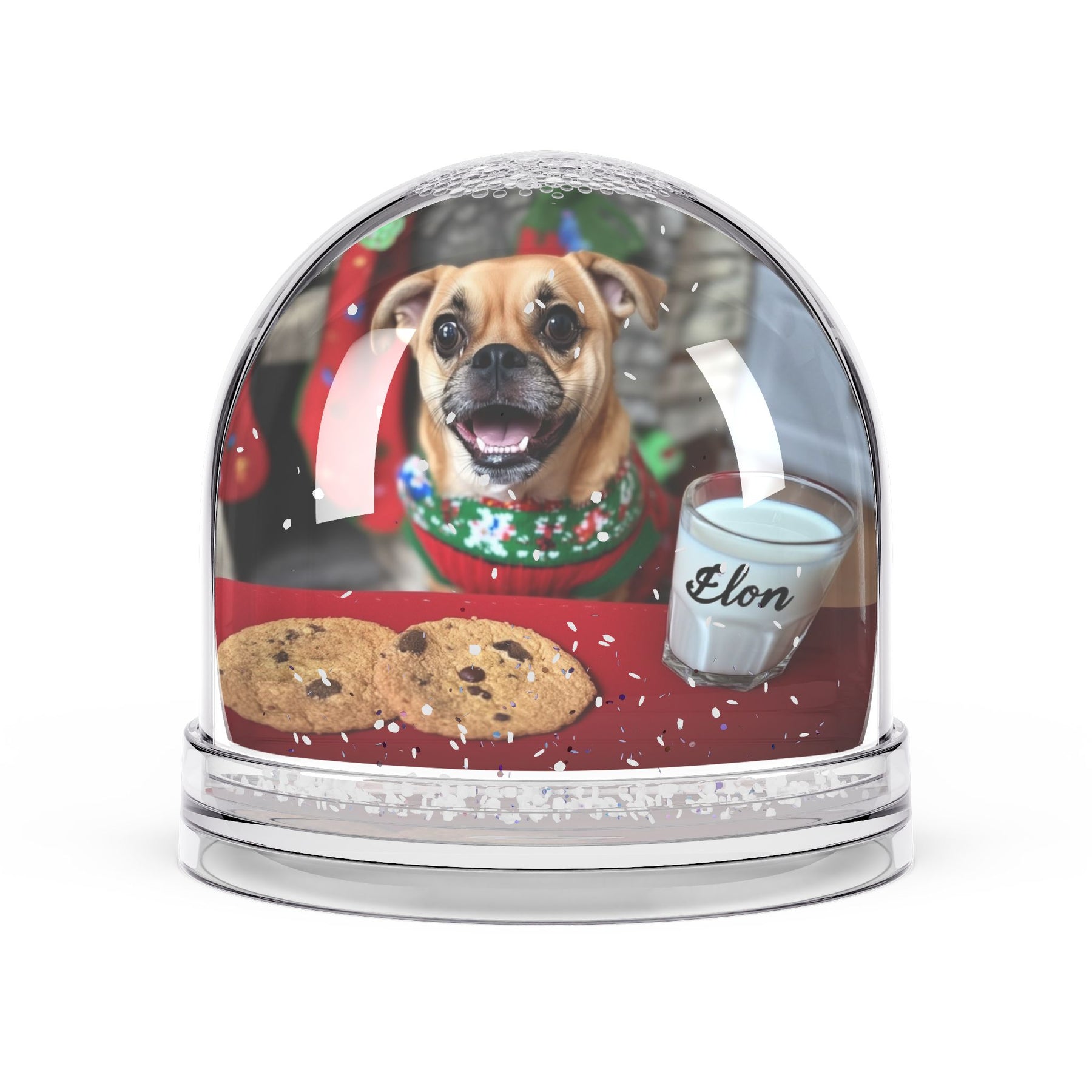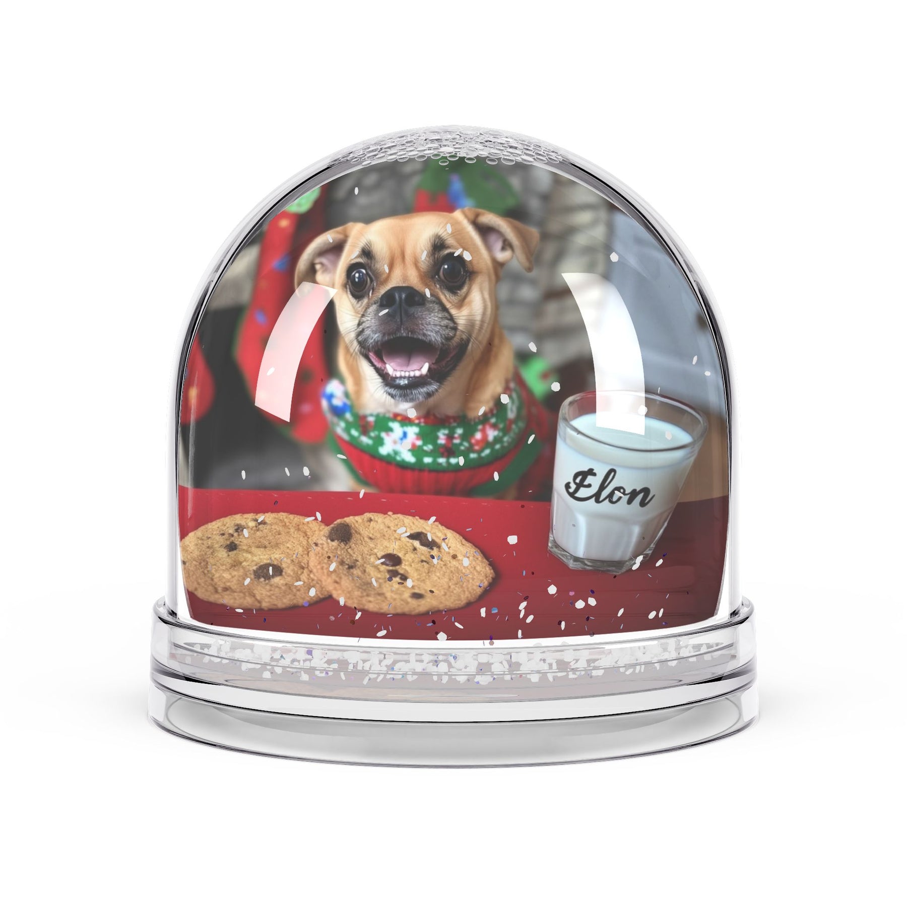 The custom design is printed on high-quality paper, ensuring a beautifully preserved design. This snow globe is the perfect blend of personalization and charm, making it an ideal gift or a special addition to your home decor.