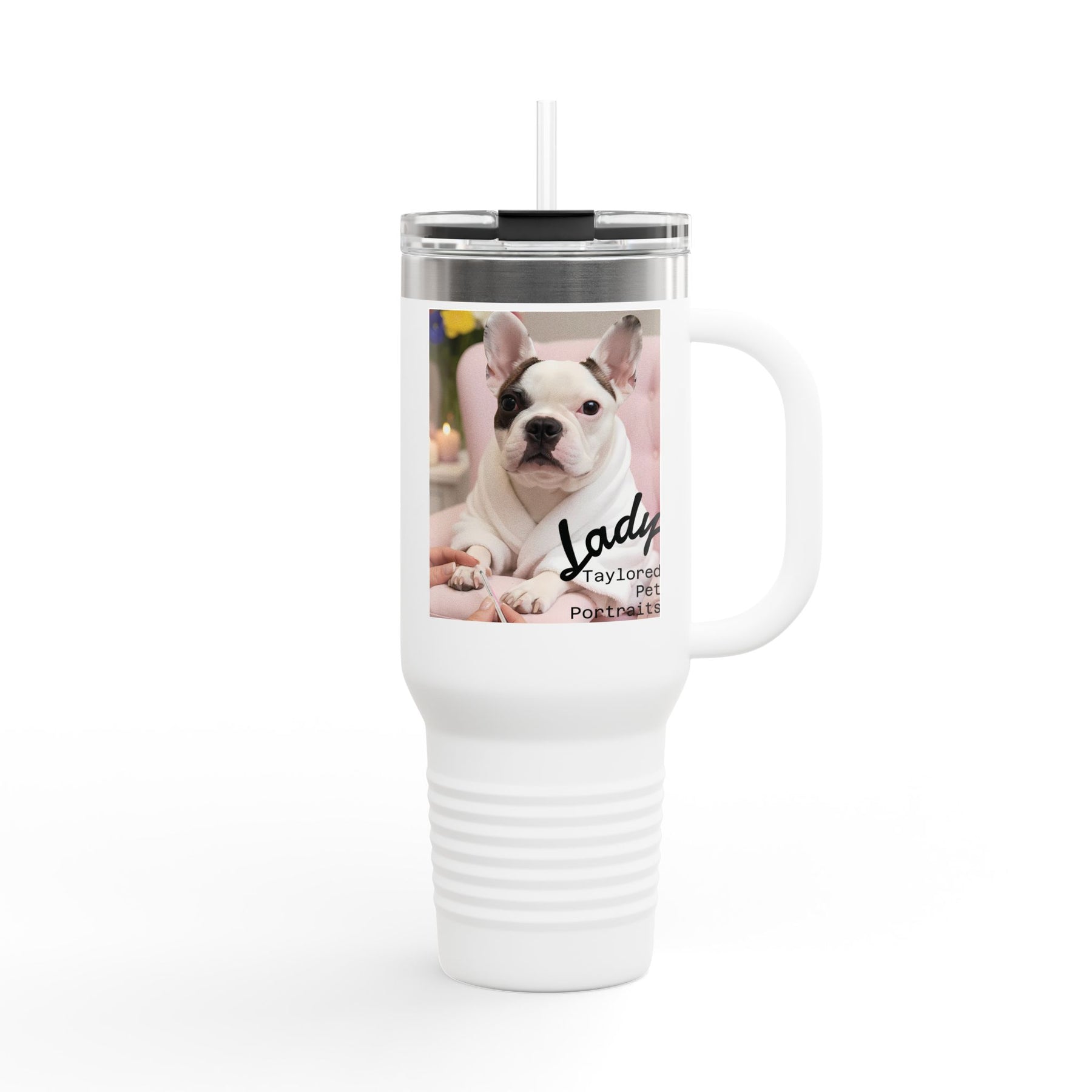 Take your pet everywhere. Premium stainless steel with wrap-around portrait design. Keeps drinks cold for 24 hours.